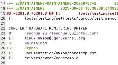 IT之家援引博文介绍,coretemp 项目由英特尔 Linux 工程师 Fenghua Yu 维护,自 2000 年 3 月起在英特尔工作,担任高级软件工程师和 Linux 内核项目负责人,拥有超过 24 年的从业经验,他长期致力于 Linux 内核开发,尤其在英特尔硬件支持方面做出了重要贡献。