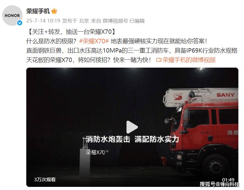 在小米和华为忙碌布局的同时,荣耀也不甘落后。荣耀X70近日再次接受了严苛的暴力测试,这次面对的是消防级水炮的猛烈袭击。结果不负众望,荣耀X70凭借其出色的防摔耐用性能,成功通过了测试。不仅如此,荣耀X70还支持IP69K、IP69、IP68、IP66满级防尘防水认证,以及SGS金标三防认证,真正做到了十面抗摔,展现了其卓越的品质。